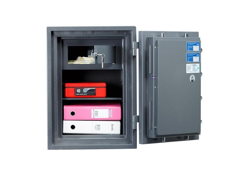 Предназначен для сохранности документов и ценностей при пожаре и взломе. Рекомендованная сумма хранения денег до 6.5 млн. руб. для физических лиц и до 2 млн. руб. для юридических лиц. Устойчивость к взлому по ГОСТ Р 50862-2017: класс 2 (ГОСТ Р). Огнестойкость: ГОСТ Р 57384-2017: класс 60Б (ГОСТ Р).